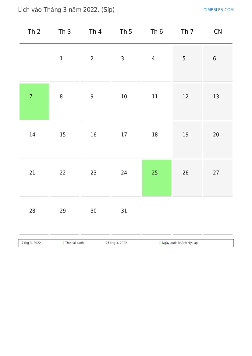 Tháng 3 có 31 ngày. Đây là 3 tháng của năm 2022. Mùa trong năm: mùa xuân. Tháng 3 bắt đầu vào thứ ba và kết thúc vào thứ Năm. Vào Tháng 3 năm 2022, có 4 ngày nghỉ và ngày nghỉ Ở cyprus.