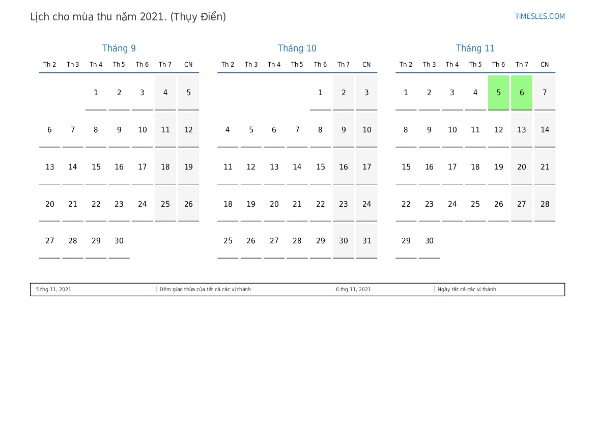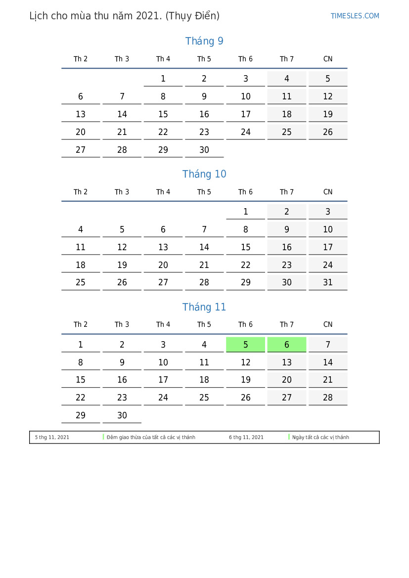 Tải xuống và in lịch PDF với các ngày lễ và cuối tuần cho mùa thu năm 2021 cho Thụy Điển