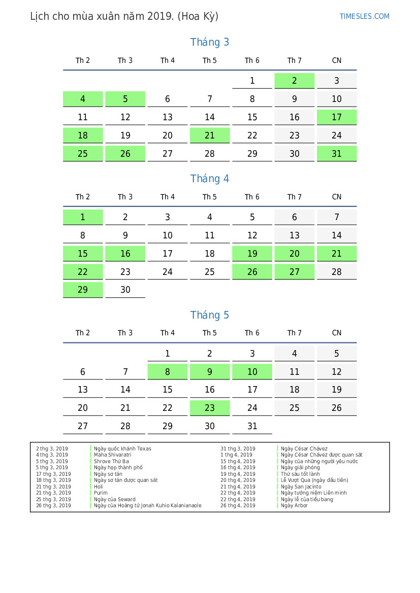 5 thg 5, 2019 Thứ năm của tháng năm