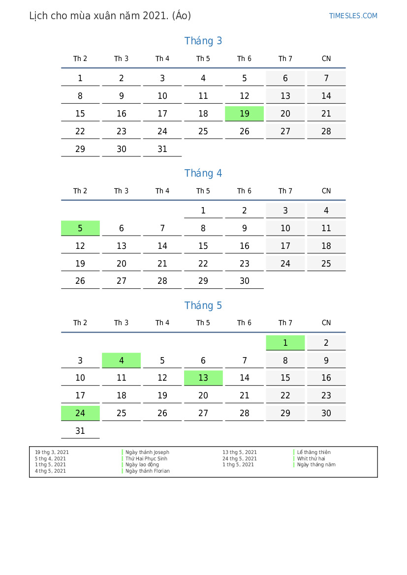 5 thg 4, 2021 Thứ Hai Phục Sinh