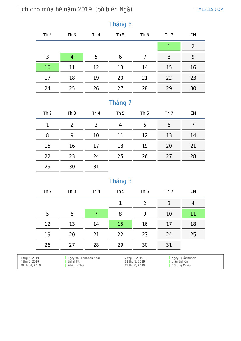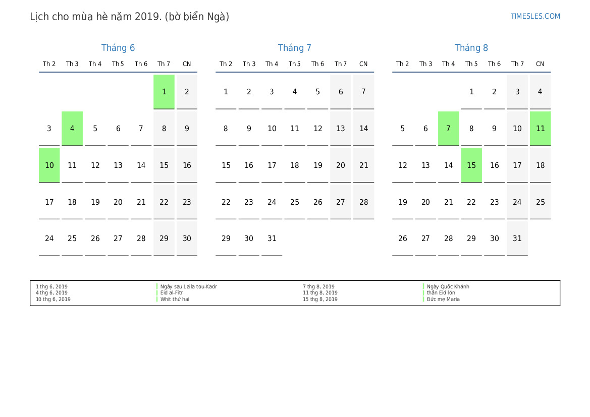 Lịch cho mùa hè năm 2019 cho Cote d'Ivoire