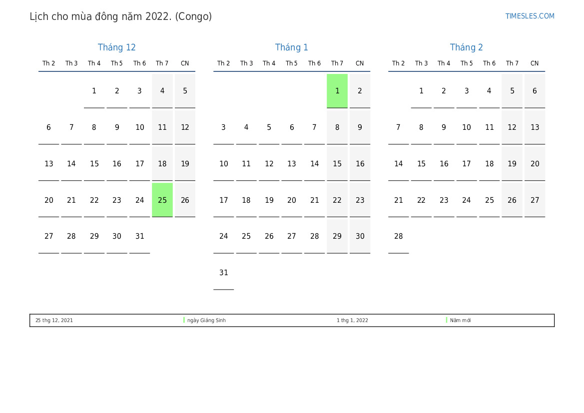 Lịch nghỉ lễ và cuối tuần cho mùa hè năm 2022 cho Congo