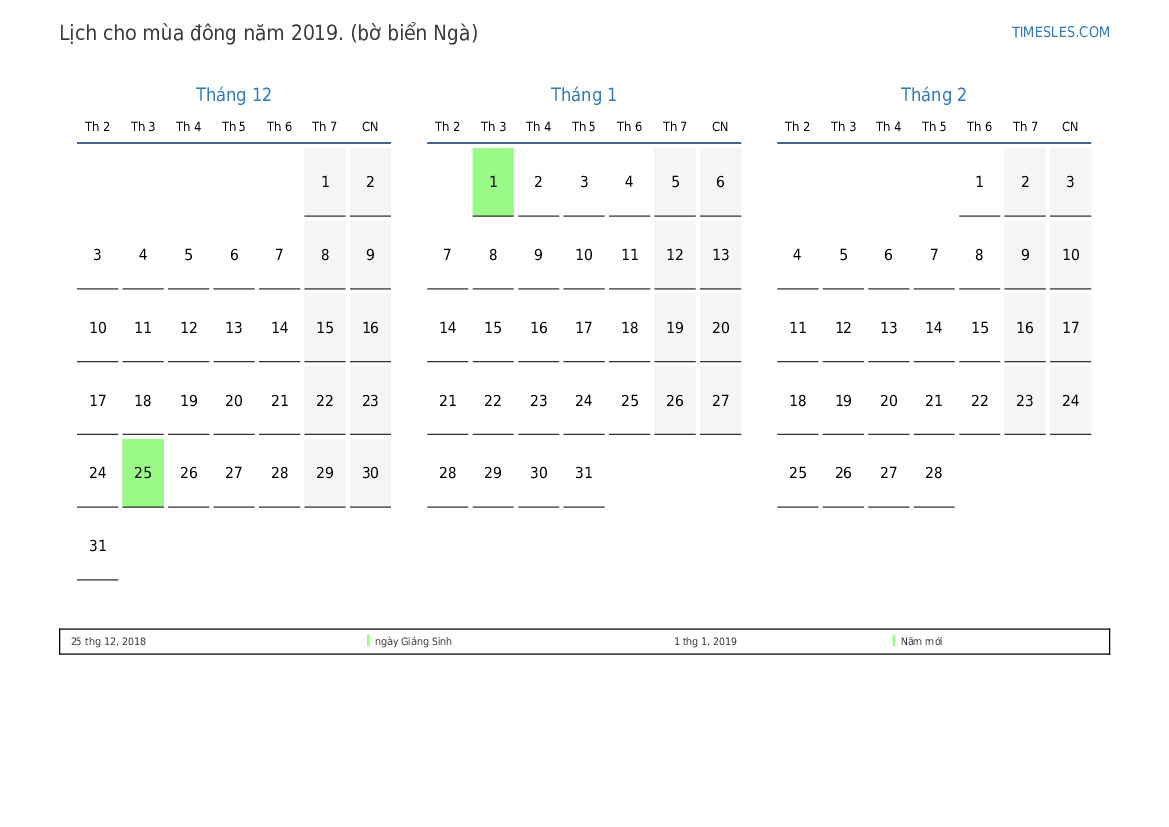 Tải xuống và in lịch PDF với các ngày lễ và cuối tuần cho mùa đông năm 2019 cho Cote d'Ivoire