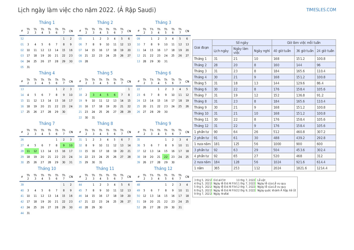 Ngày làm việc cho Tháng 11 năm 2022 cho Ả Rập Saudi