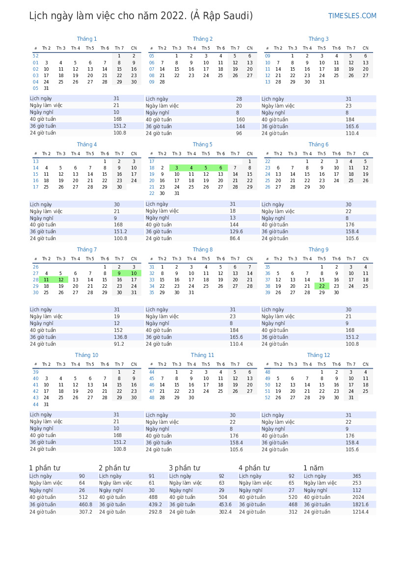 Phong cảnh lịch ngày làm việc trong năm