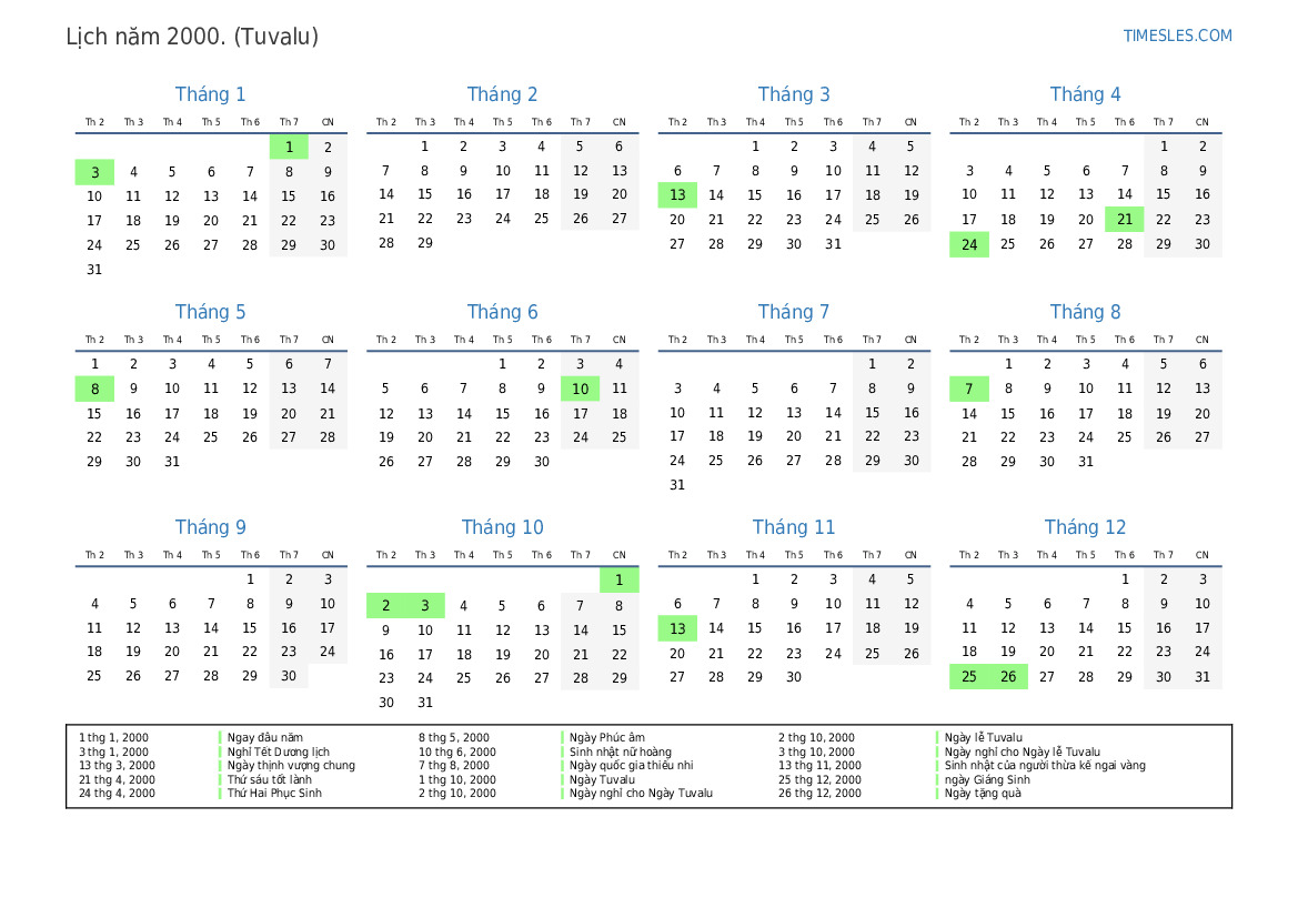 2 thg 10, 2000 Ngày nghỉ cho Ngày Tuvalu