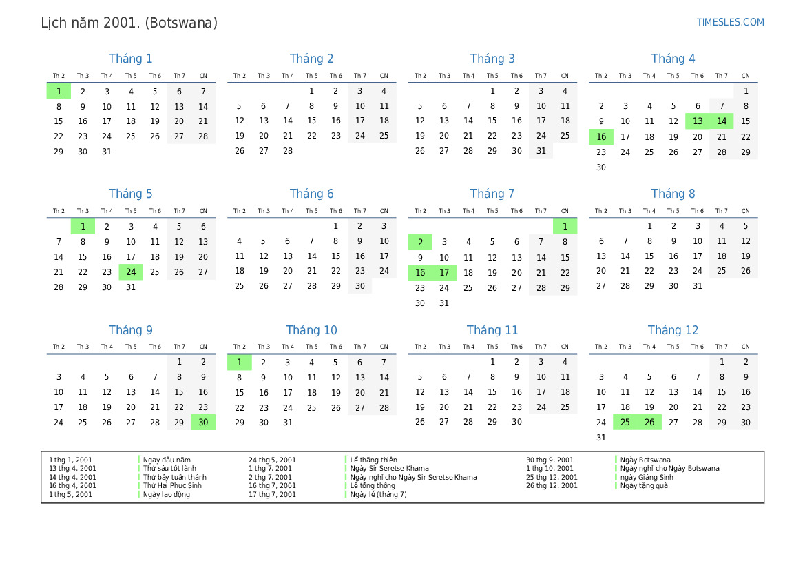 1 thg 10, 2001 Ngày nghỉ cho Ngày Botswana