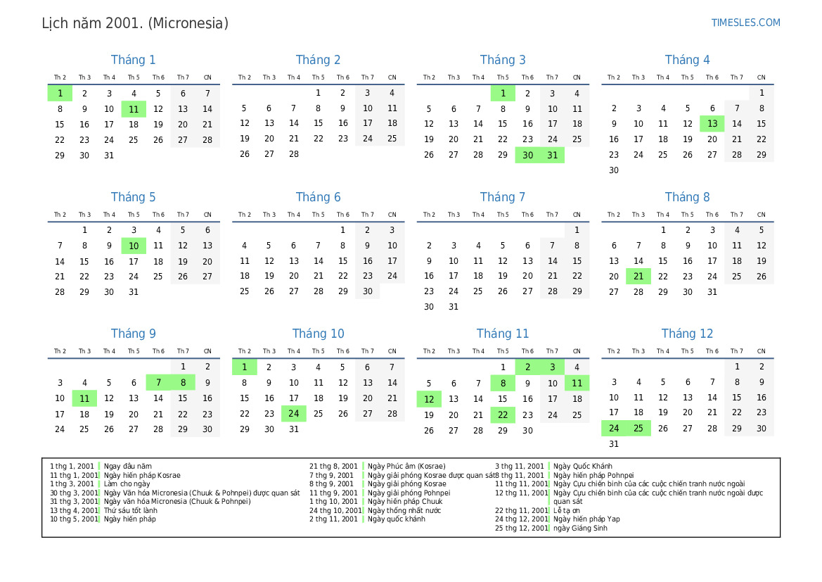 11 thg 1, 2001 Ngày hiến pháp Kosrae