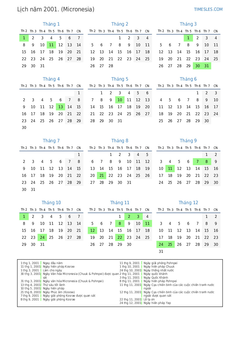 30 thg 3, 2001 Ngày Văn hóa Micronesia (Chuuk & Pohnpei) được quan sát