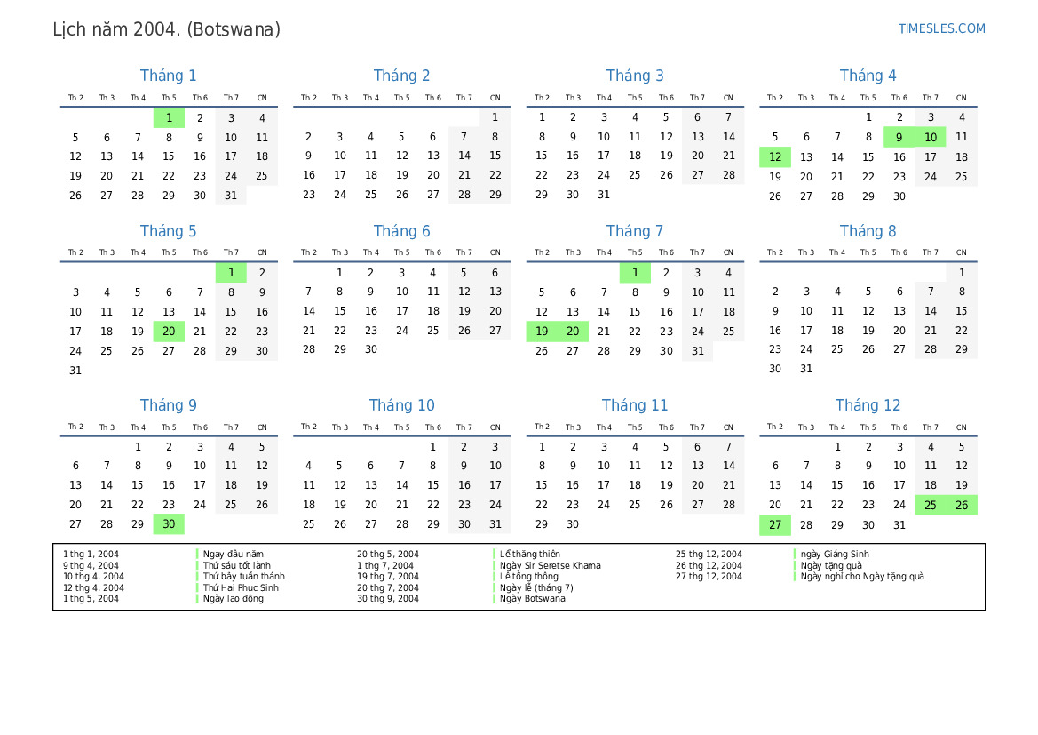 20 thg 7, 2004 Ngày lễ (tháng 7)