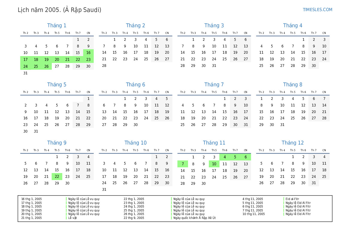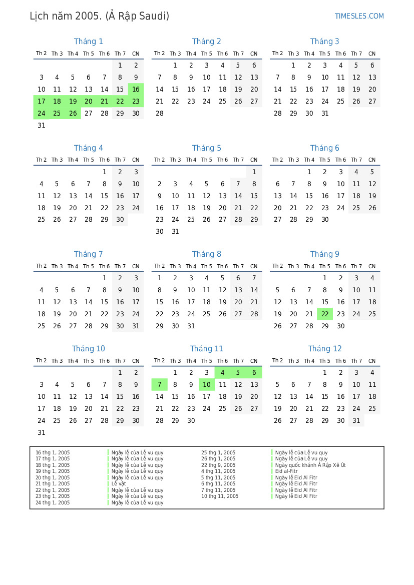 9 thg 11, 2005 Ngày lễ Eid al-Fitr (chỉ dành cho khu vực công)
