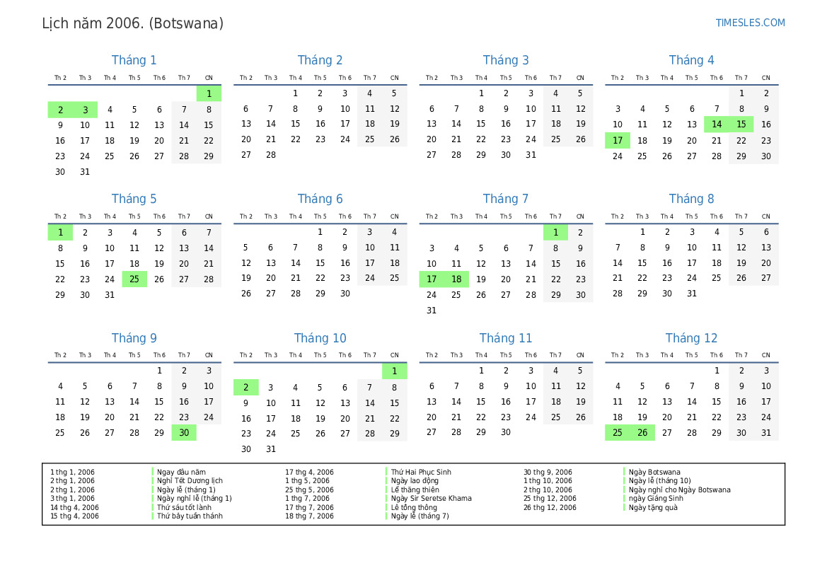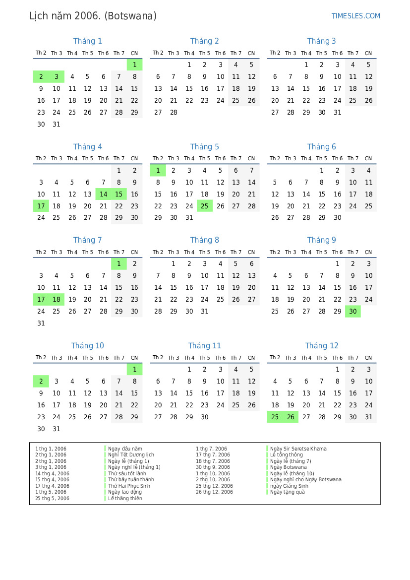 2 thg 10, 2006 Ngày nghỉ cho Ngày Botswana