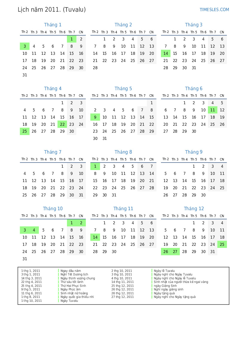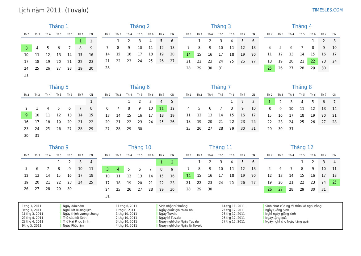 4 thg 10, 2011 Ngày nghỉ cho Ngày lễ Tuvalu