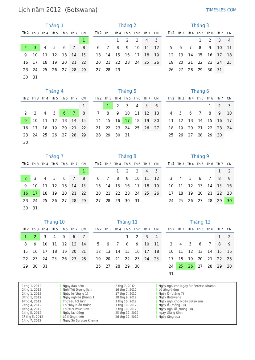 1 thg 10, 2012 Ngày nghỉ cho Ngày Botswana