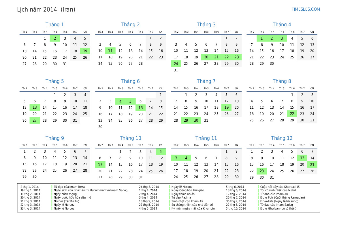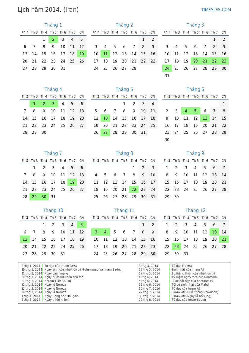 30 thg 7, 2014 Eid-e-Fetr (Ngày lễ bổ sung)