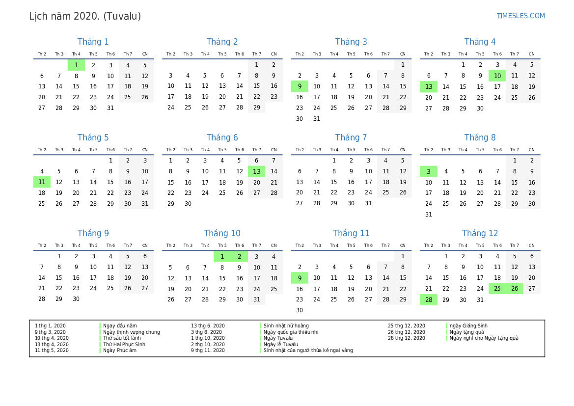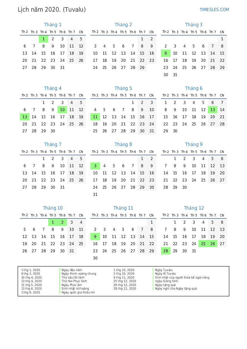 2 thg 10, 2020 Ngày lễ Tuvalu