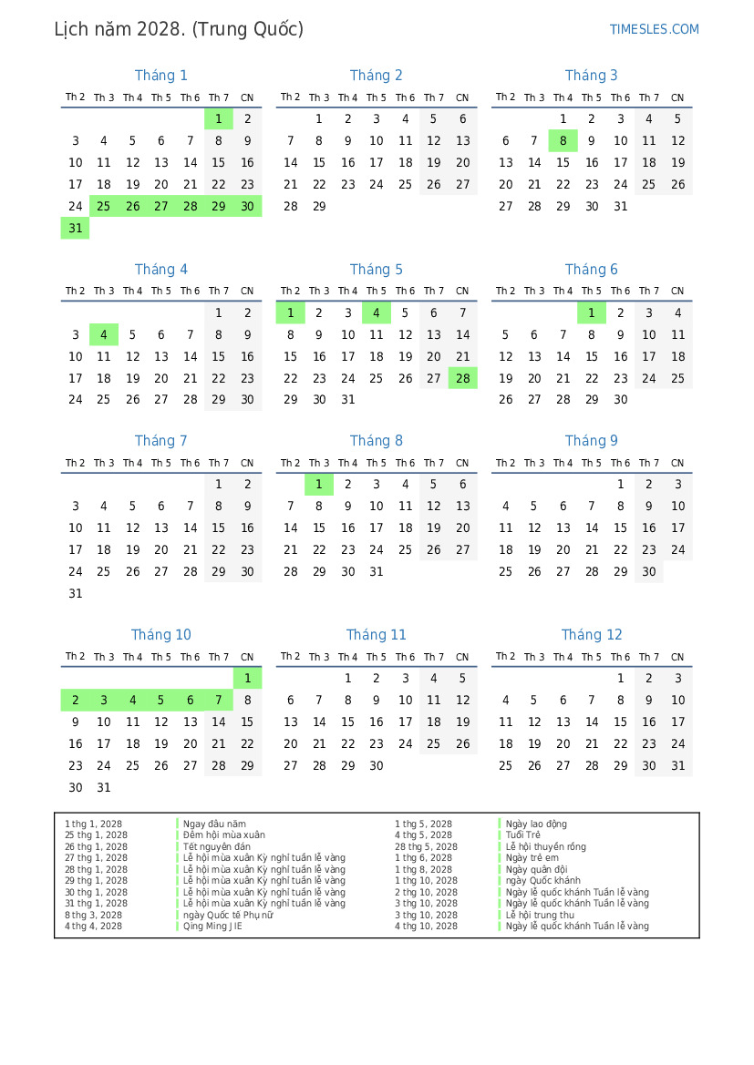 28 thg 1, 2028 Lễ hội mùa xuân Kỳ nghỉ tuần lễ vàng