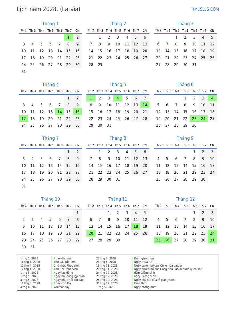 20 thg 11, 2028 Ngày tuyên bố của Cộng hòa Latvia được quan sát