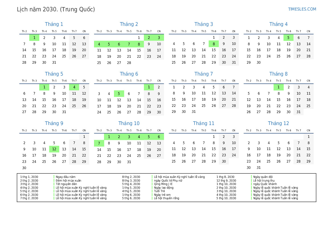 2 thg 10, 2030 Ngày lễ quốc khánh Tuần lễ vàng