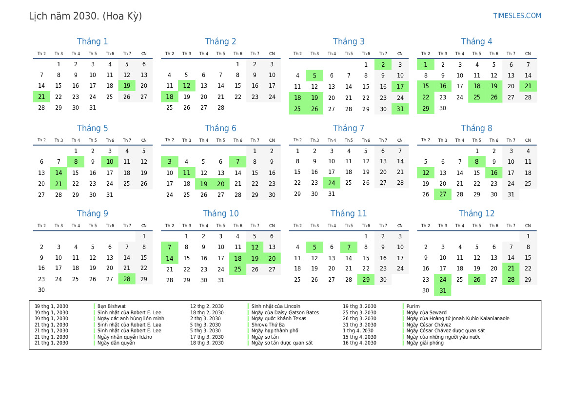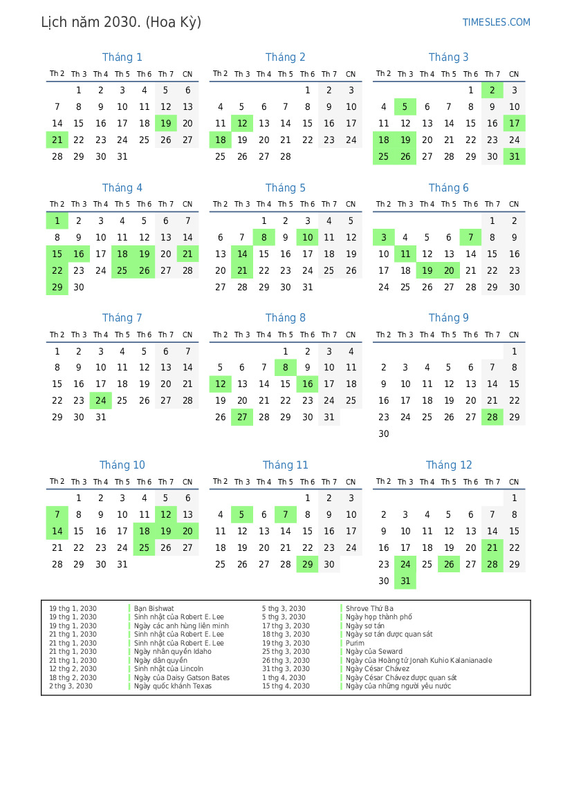29 thg 11, 2030 Ngày lễ của tiểu bang