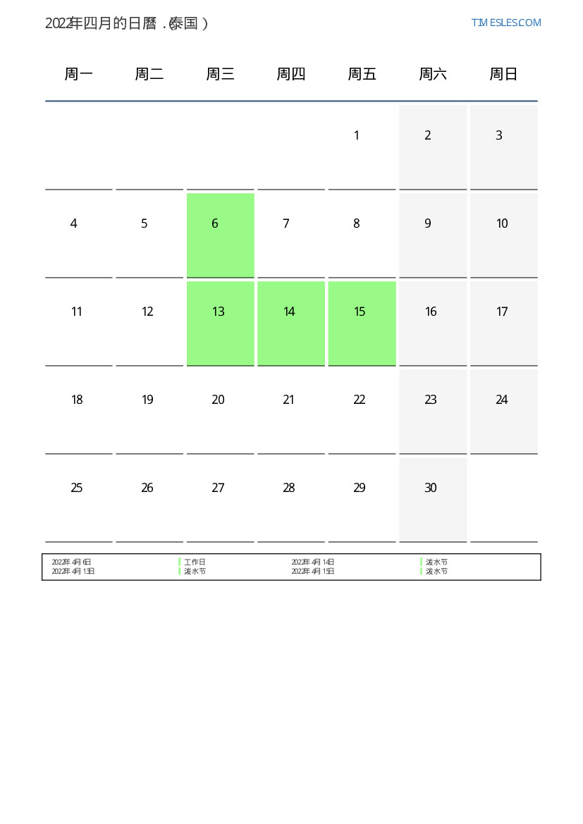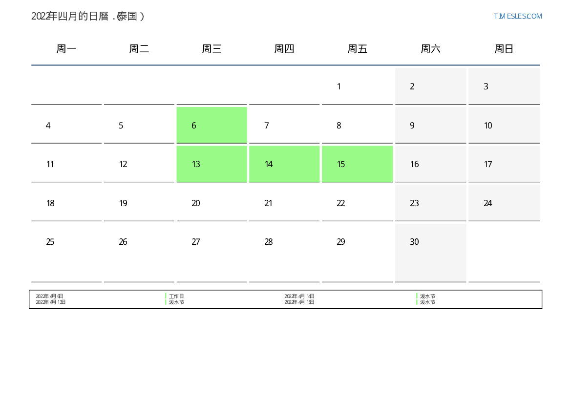下載並打印2022年四月为泰国節假日和周末的PDF日曆