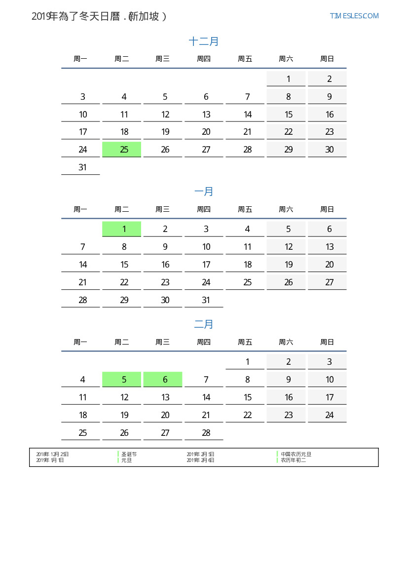 对于新加坡2019年為了春天日曆