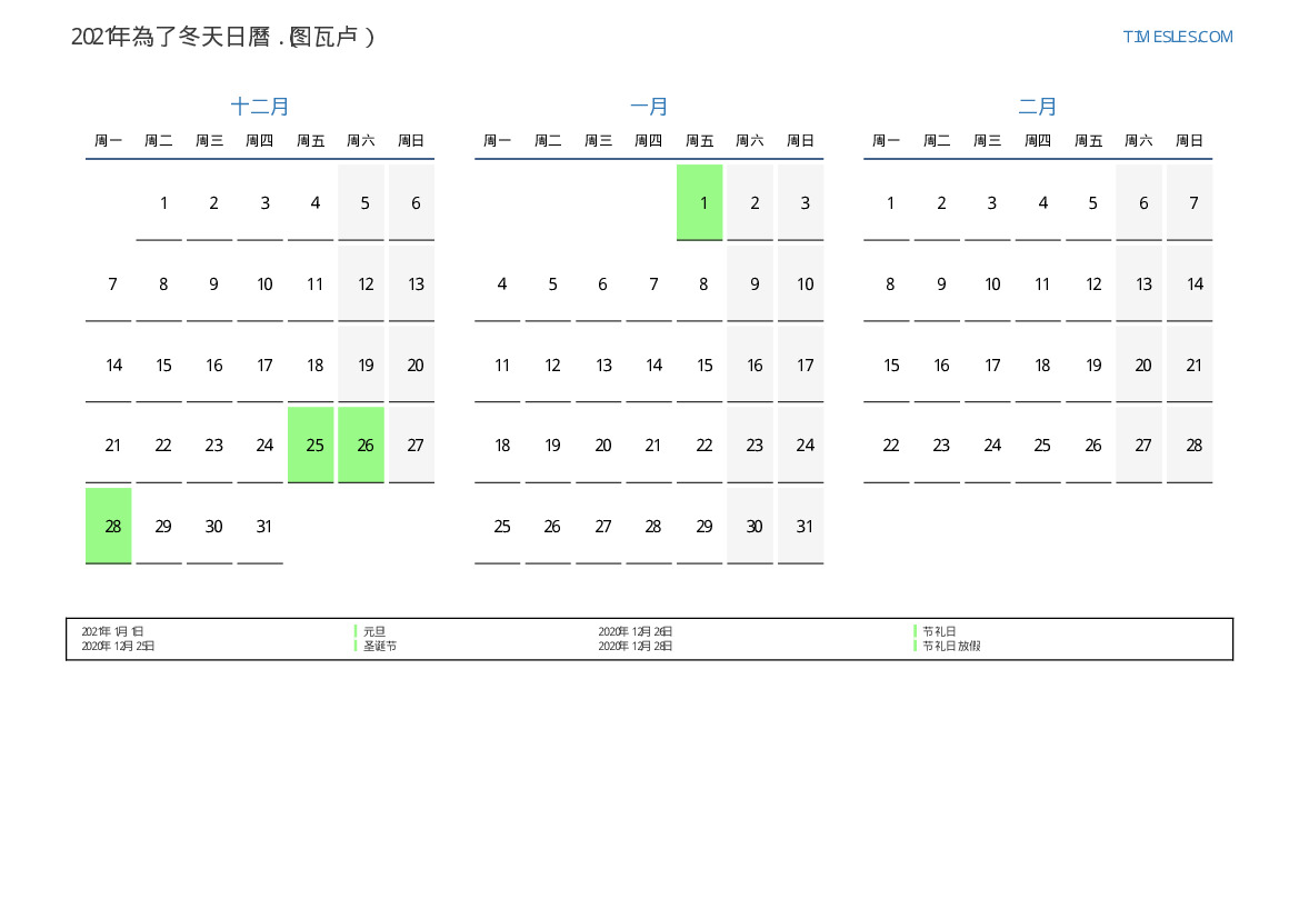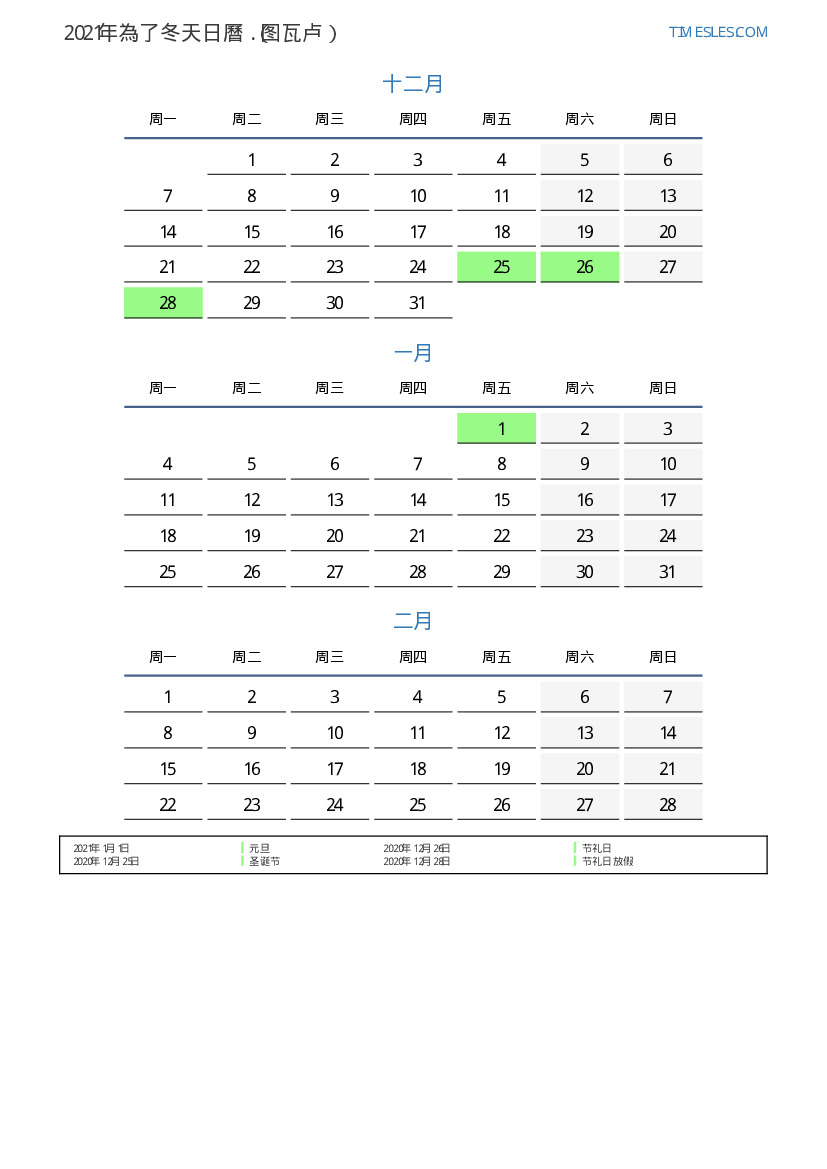 对于图瓦卢2021年為了春天假期和周末的日曆