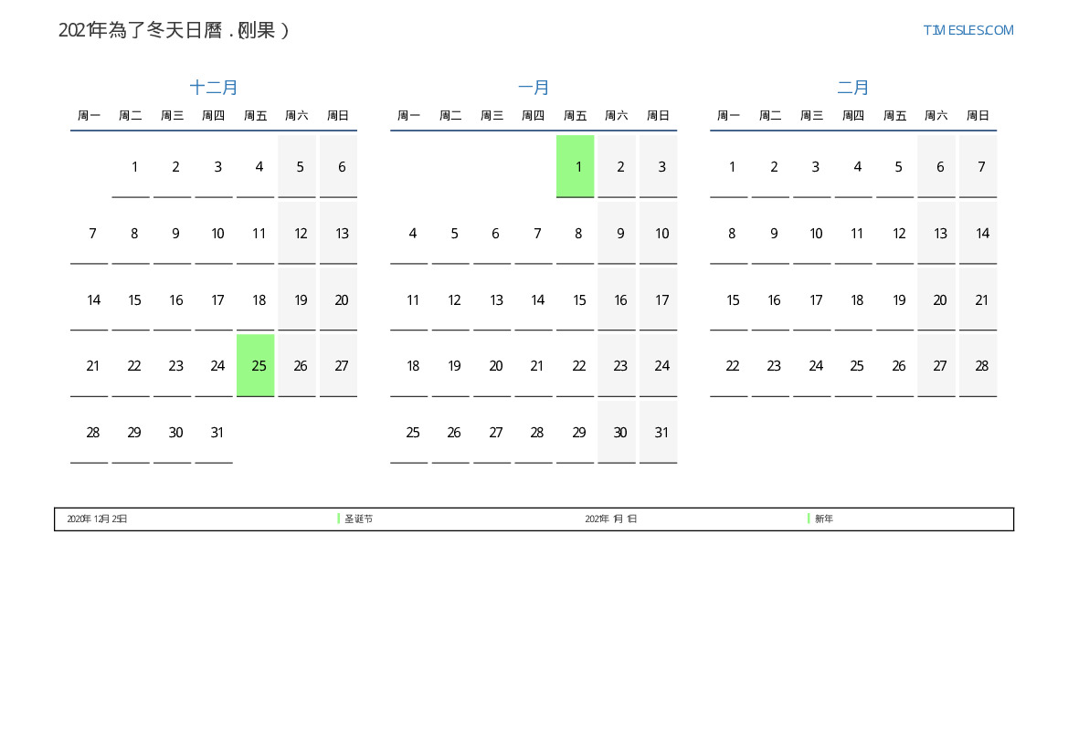 假期風景日曆