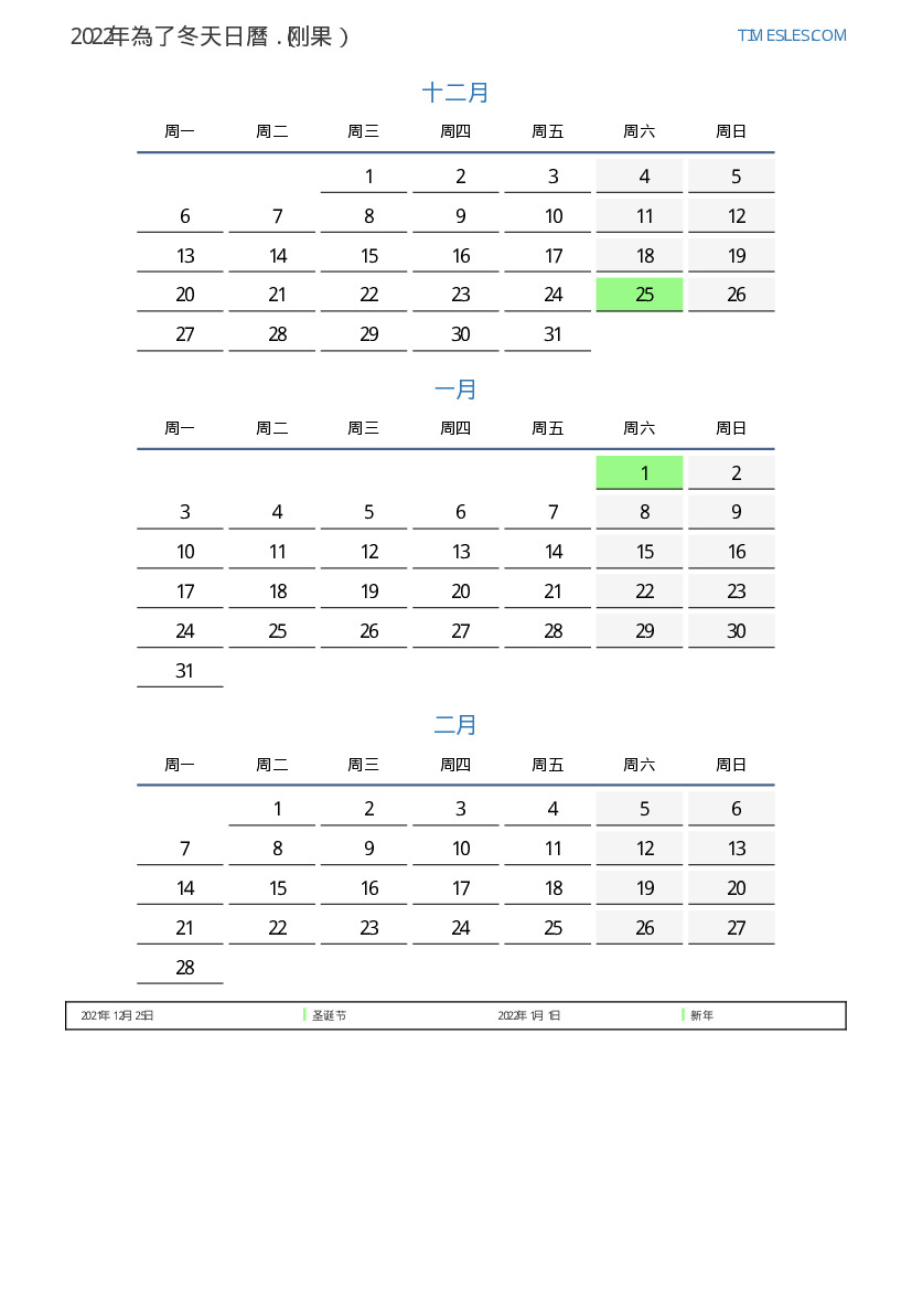 假期肖像日曆