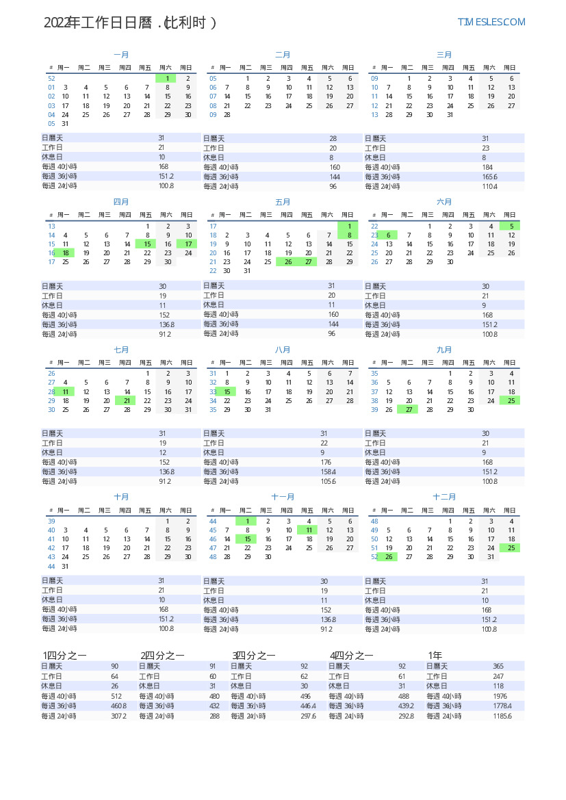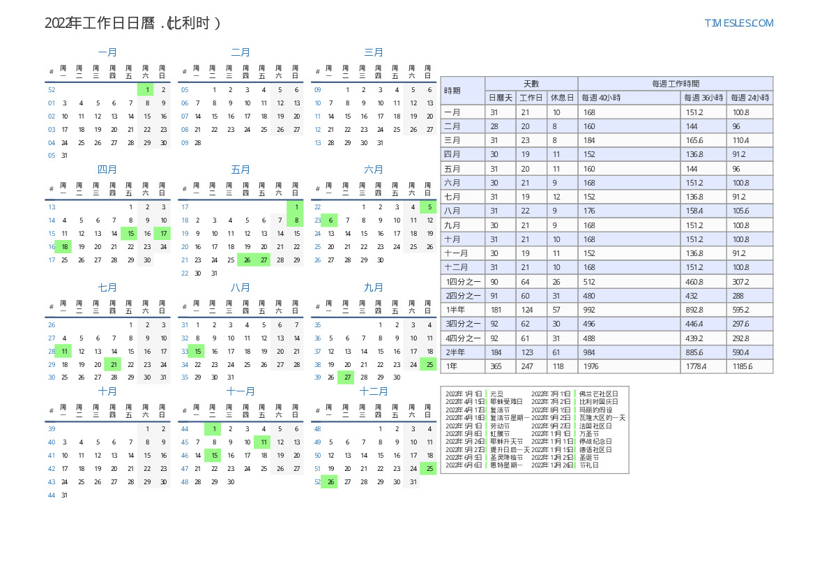比利时2022年五月的工作日