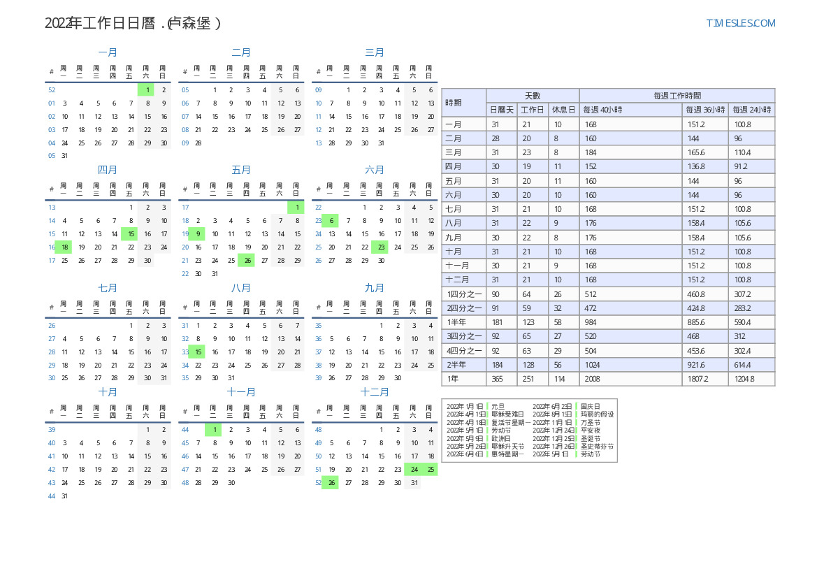 2022年六月的工作日。在卢森堡在2022年六月有4 假期和休假。