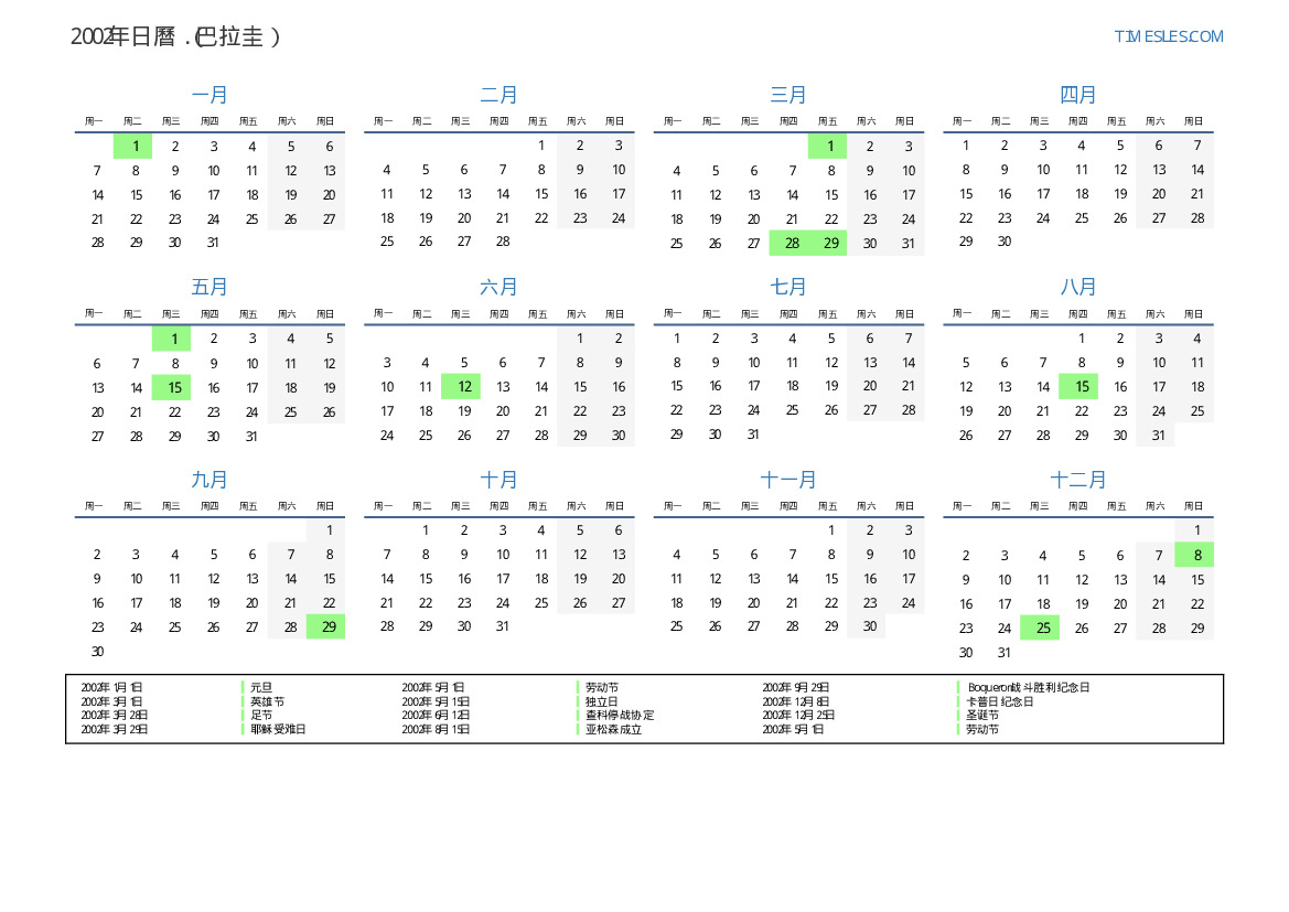 下載並打印2002年巴拉圭節假日和周末的PDF日曆