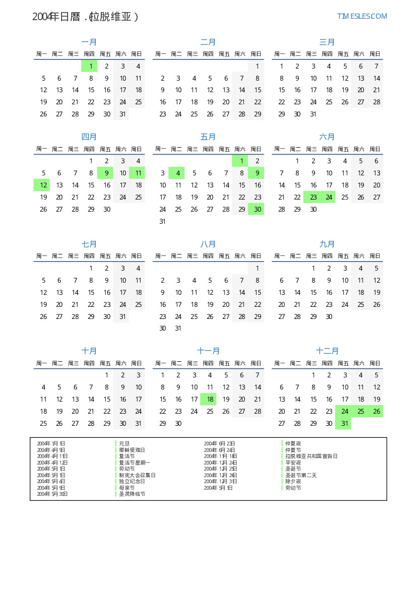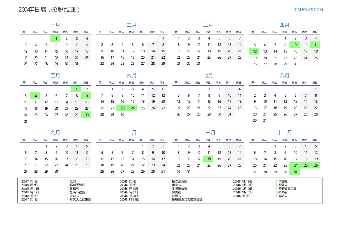 2004年拉脱维亚日曆