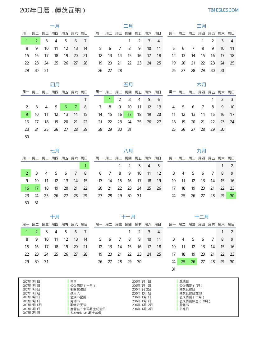 陽曆,不是飛躍年,一年365天。 在2007年,2007有23 假期和休假。 在中國東部的日曆上,2007年豬年。 一年從週一開始,到週一結束。