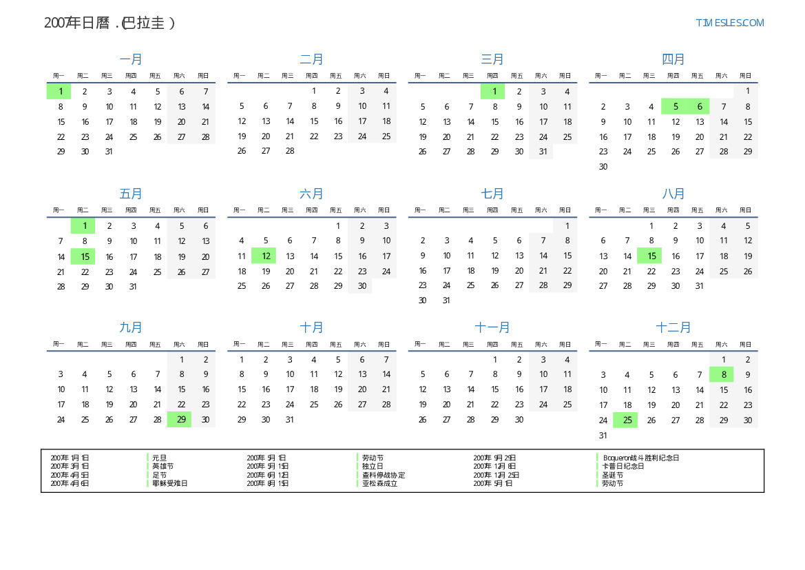 陽曆,不是飛躍年,一年365天。 在2007年,2007有18 假期和休假。 在中國東部的日曆上,2007年豬年。 一年從週一開始,到週一結束。
