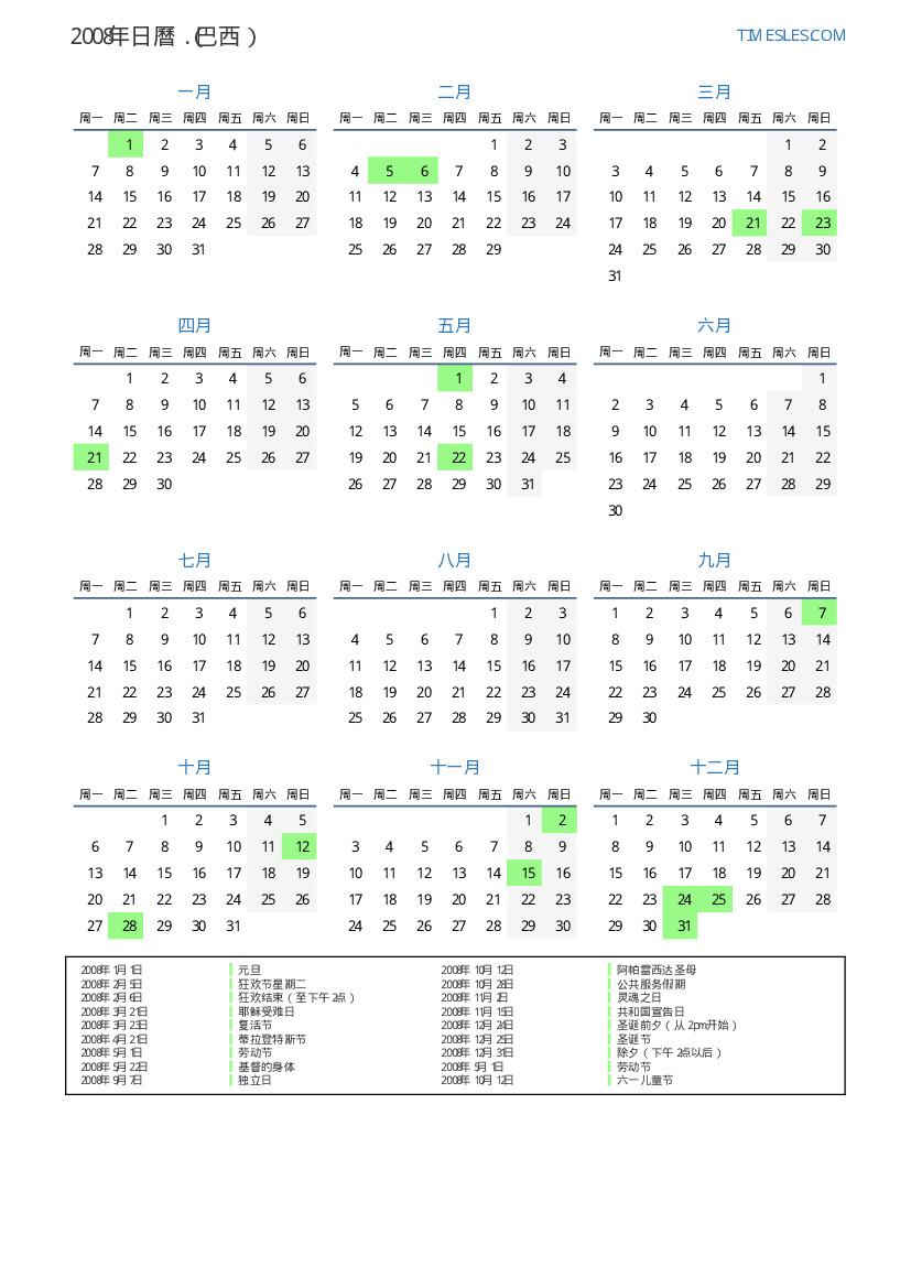 2008年巴西日曆
