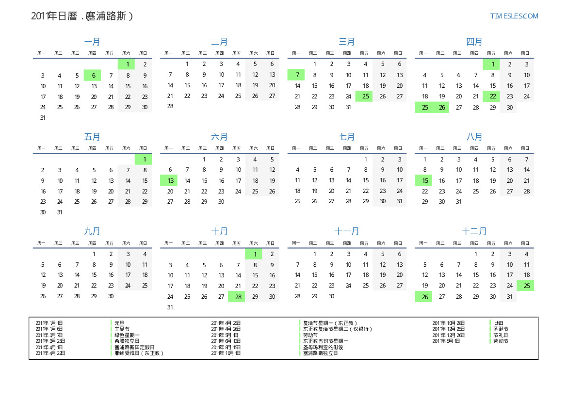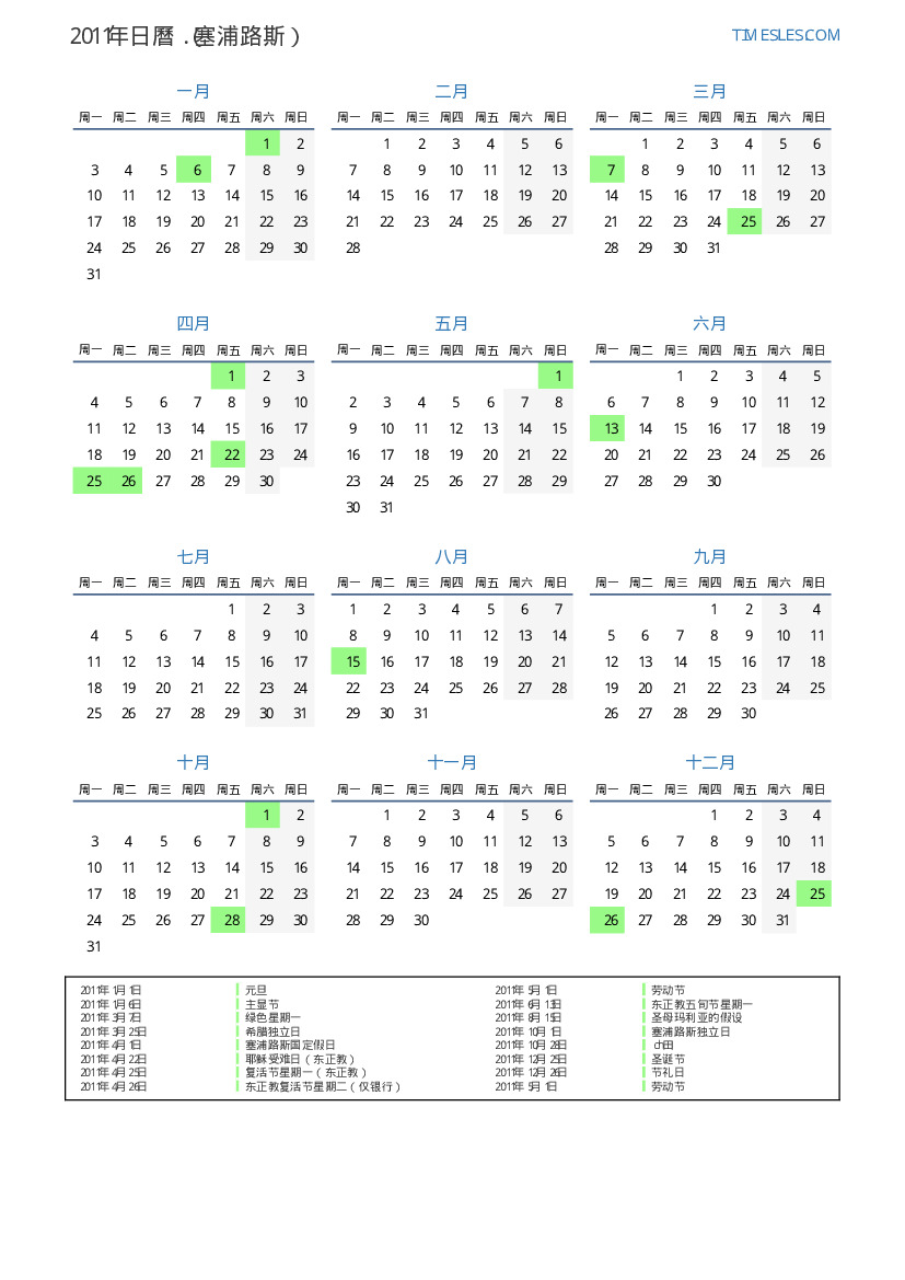 下載並打印2011年塞浦路斯節假日和周末的PDF日曆
