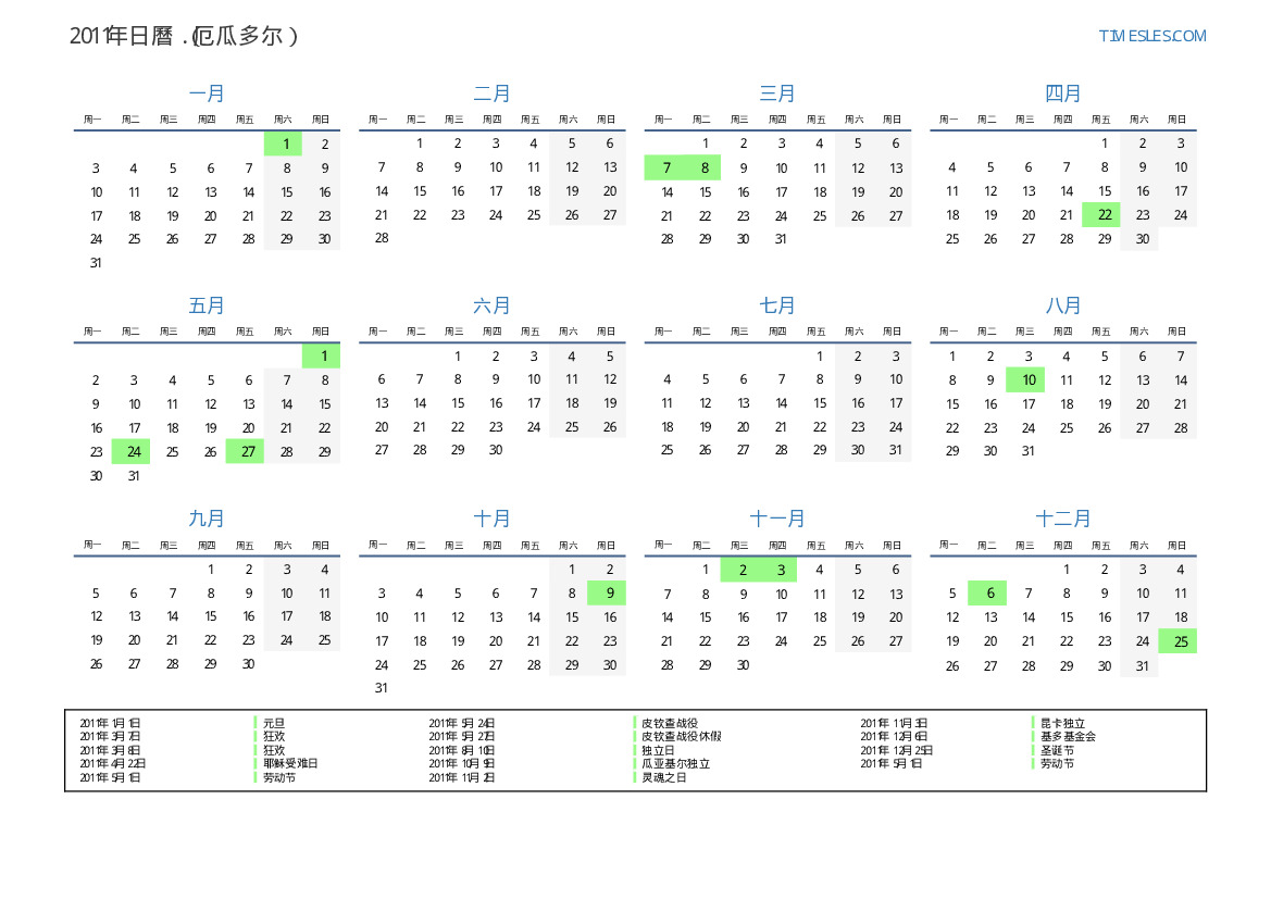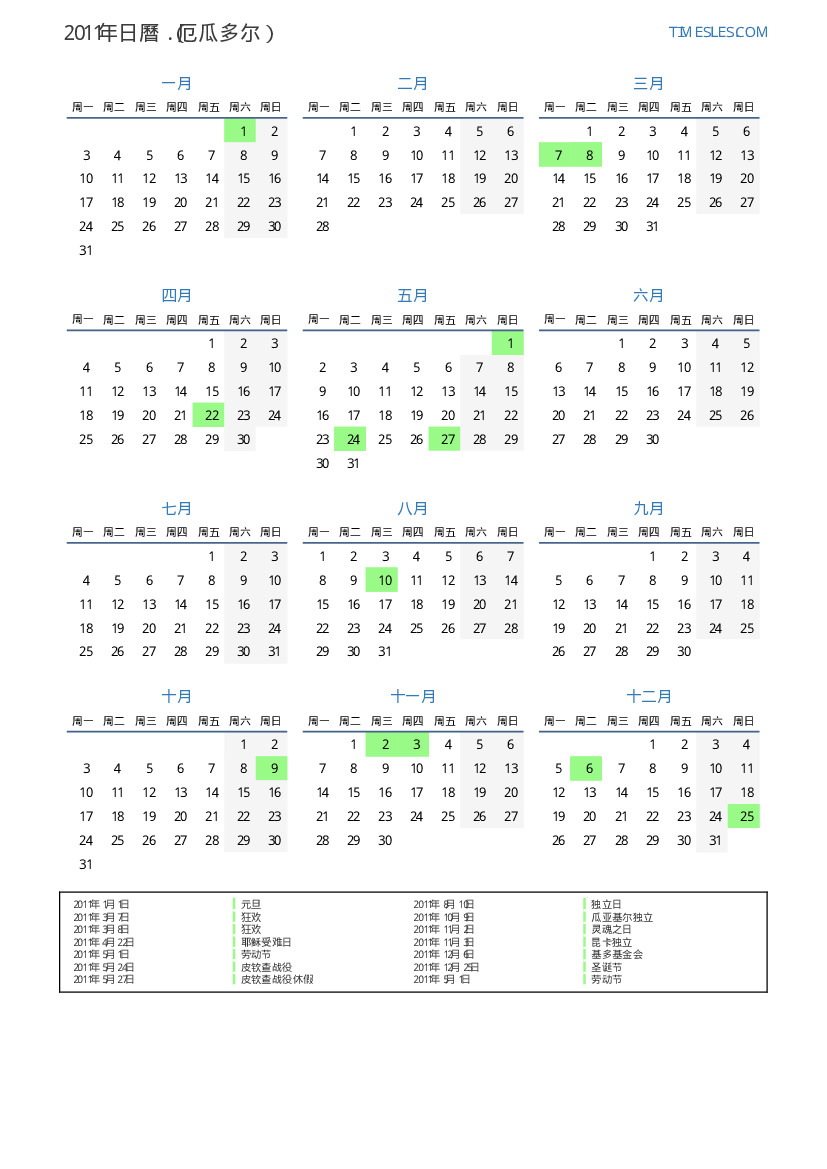 2011年厄瓜多尔日曆