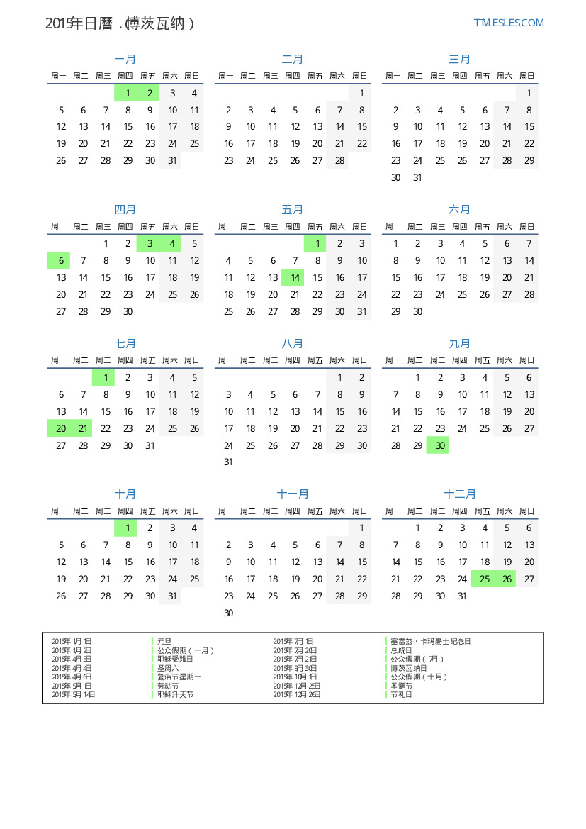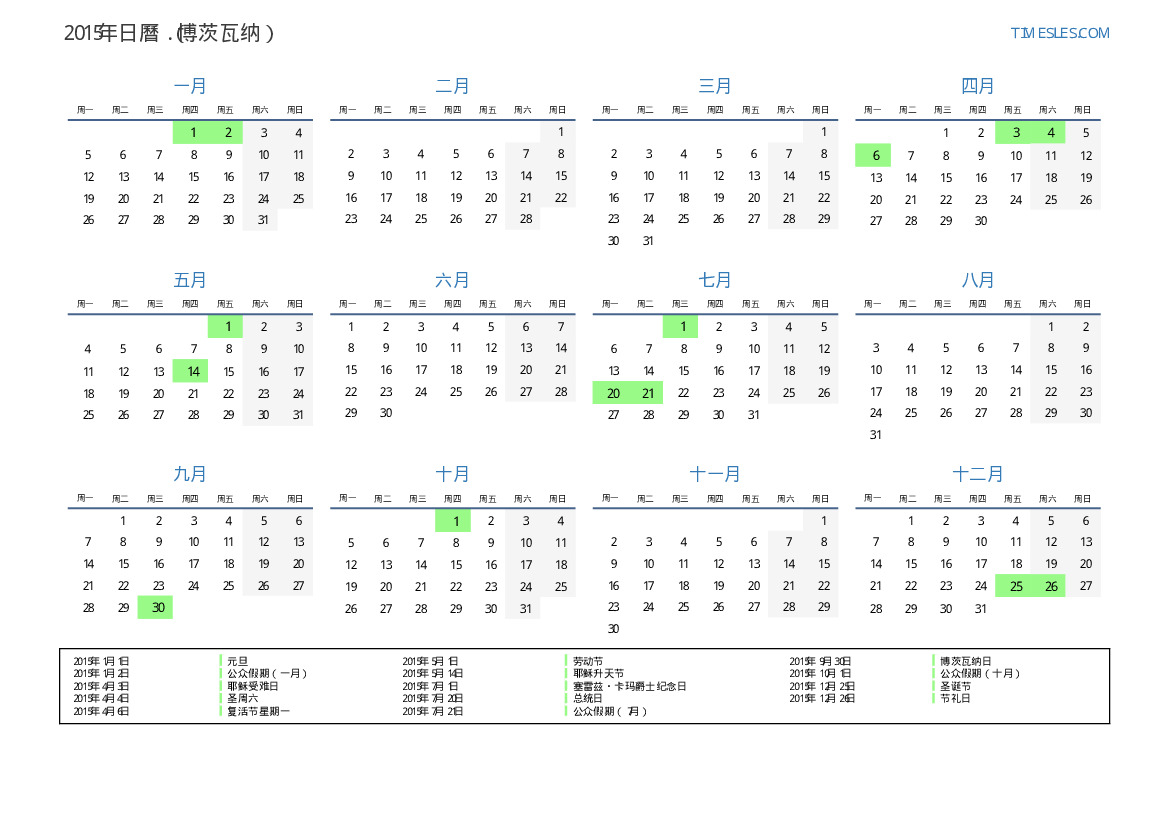 下載並打印2015年博茨瓦纳節假日和周末的PDF日曆