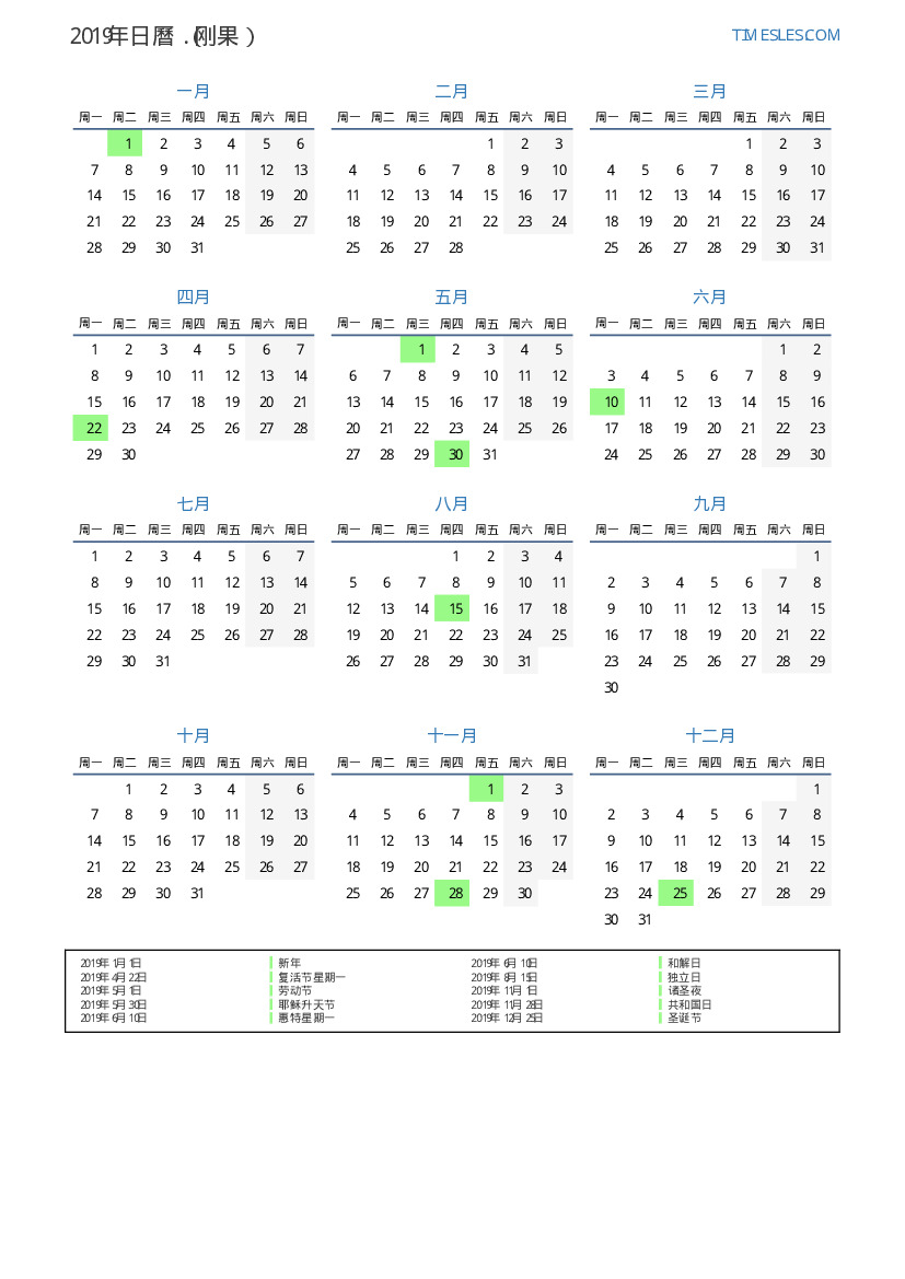 陽曆,不是飛躍年,一年365天。 在2019年,2019有17 假期和休假。 在中國東部的日曆上,2019年豬年。 一年從星期二開始,到星期二結束。