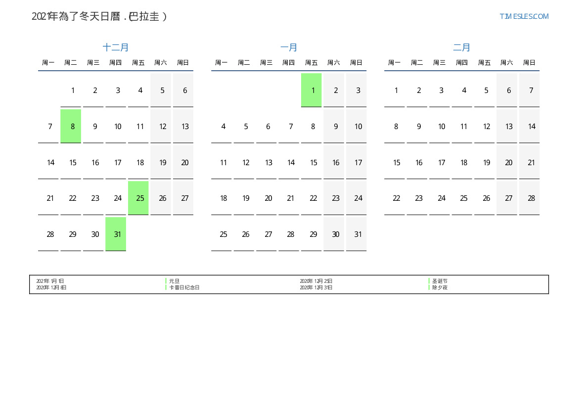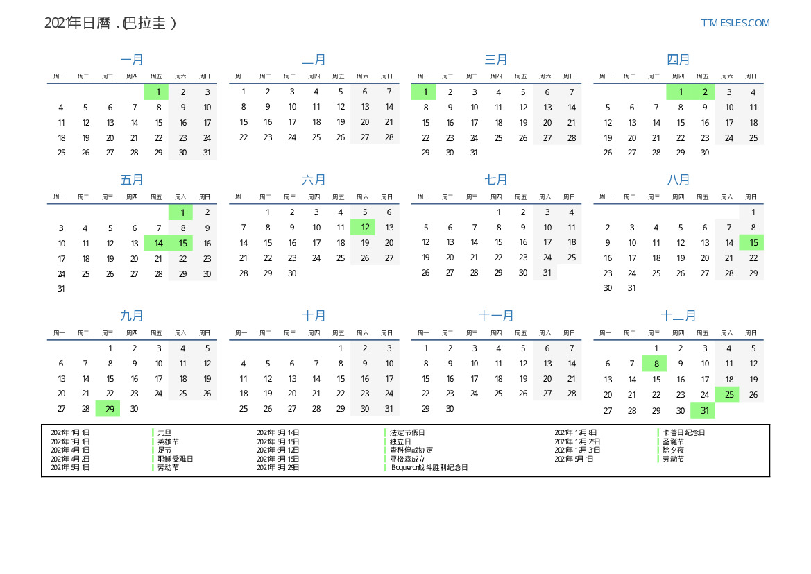 下載並打印2021年巴拉圭節假日和周末的PDF日曆