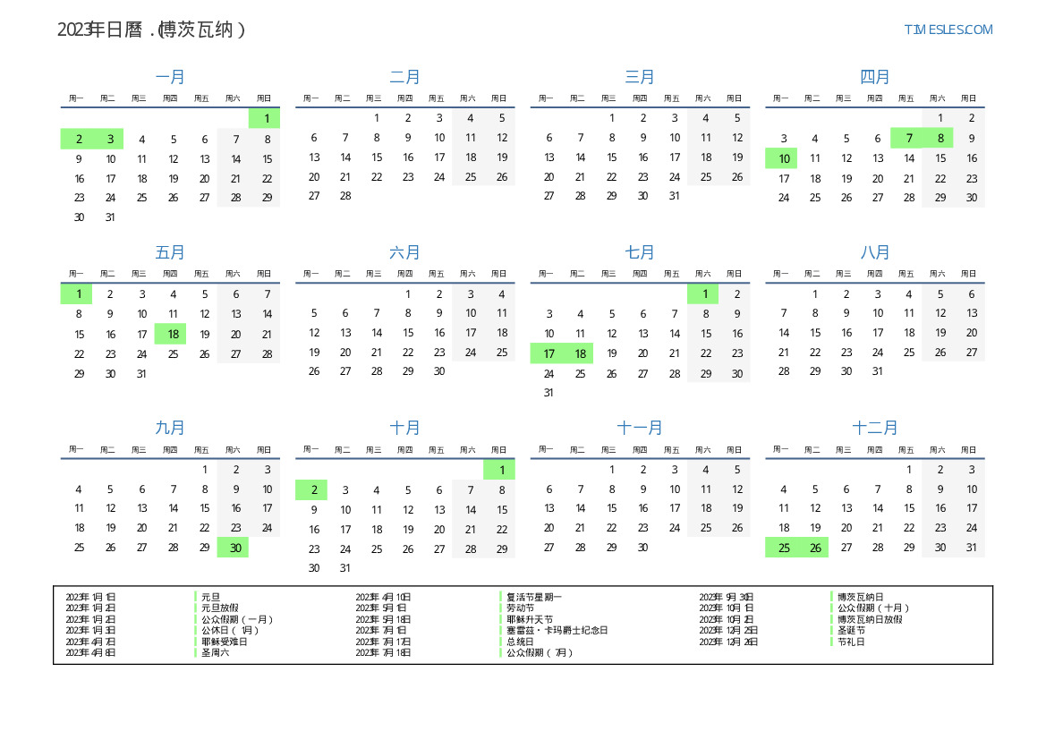 陽曆,不是飛躍年,一年365天。 在2023年,2023有23 假期和休假。 在中國東部的日曆上,2023年兔年。 一年從在星期天開始,到在星期天結束。