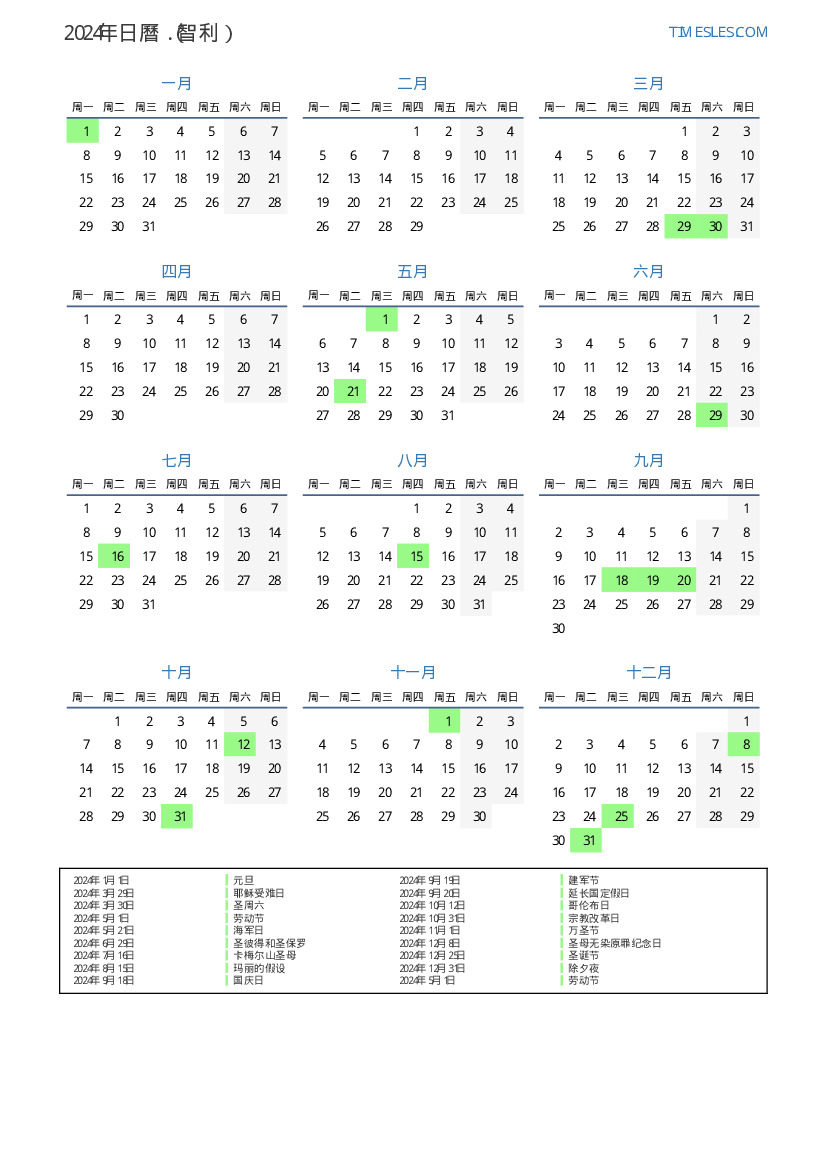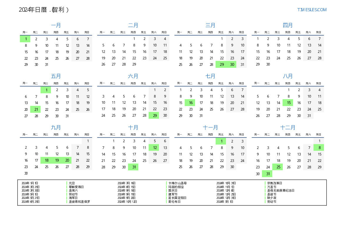 2024年智利日曆