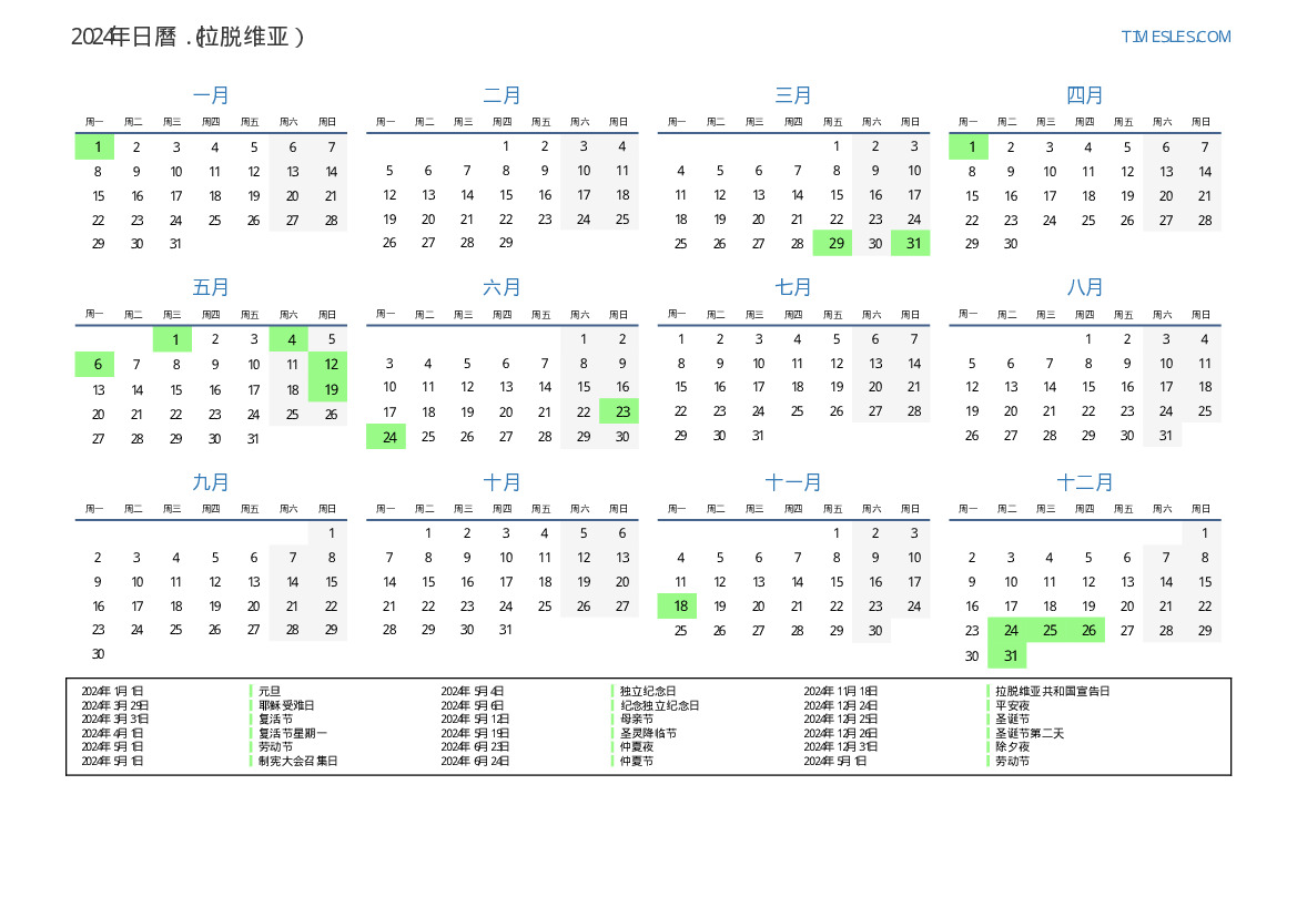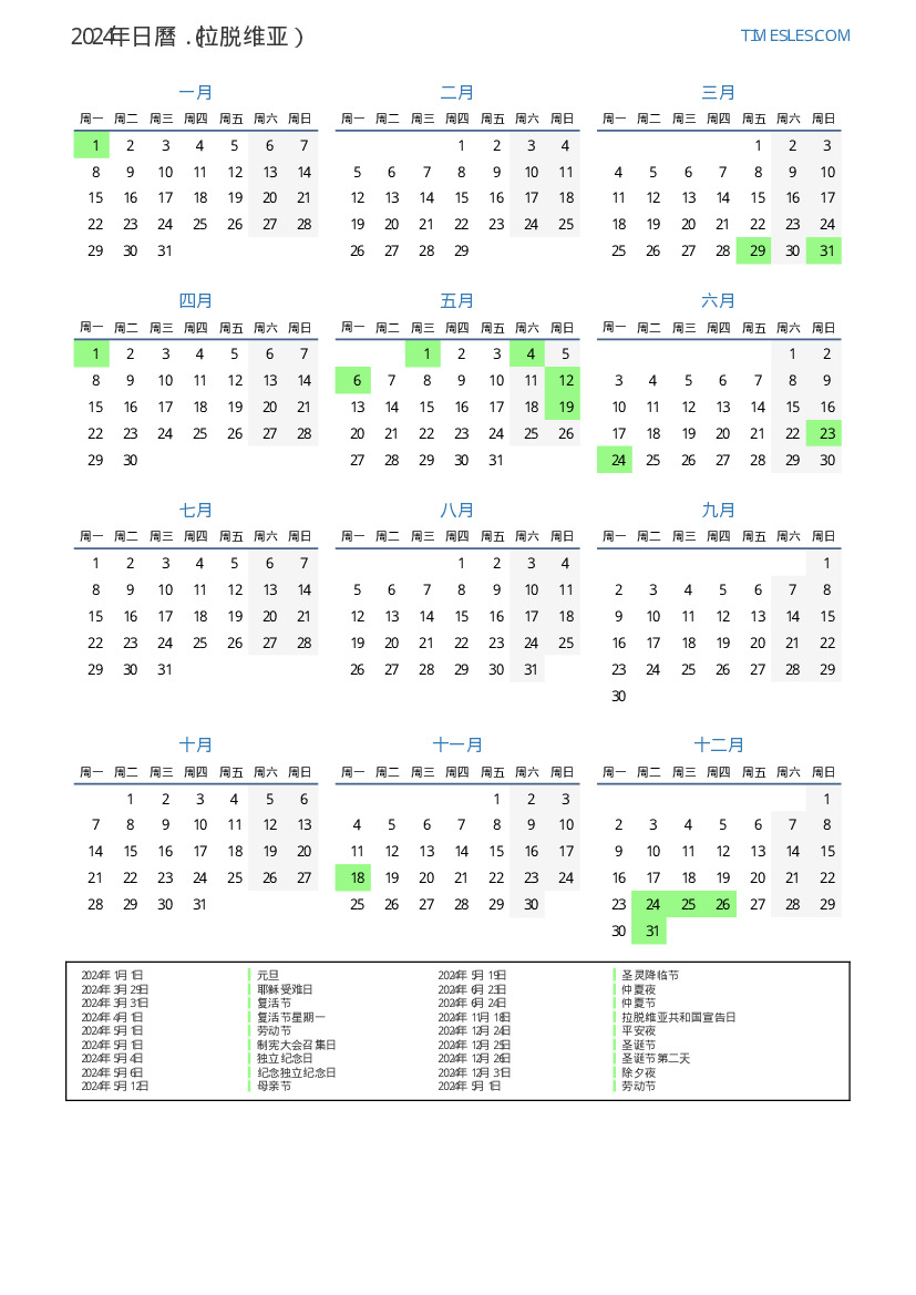 2024年拉脱维亚日曆