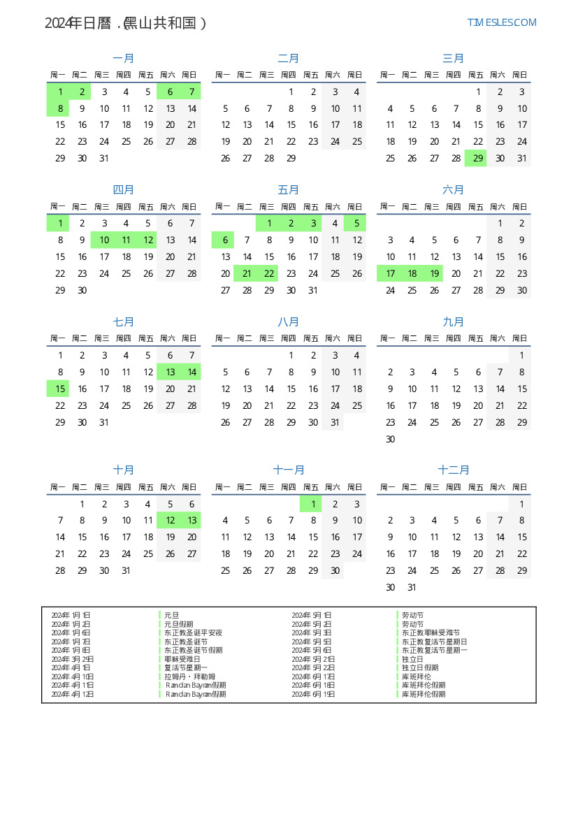 陽曆,閏年,一年366天。 在2024年,2024有33 假期和休假。 在中國東部的日曆上,2024年龍年。 一年從週一開始,到星期二結束。