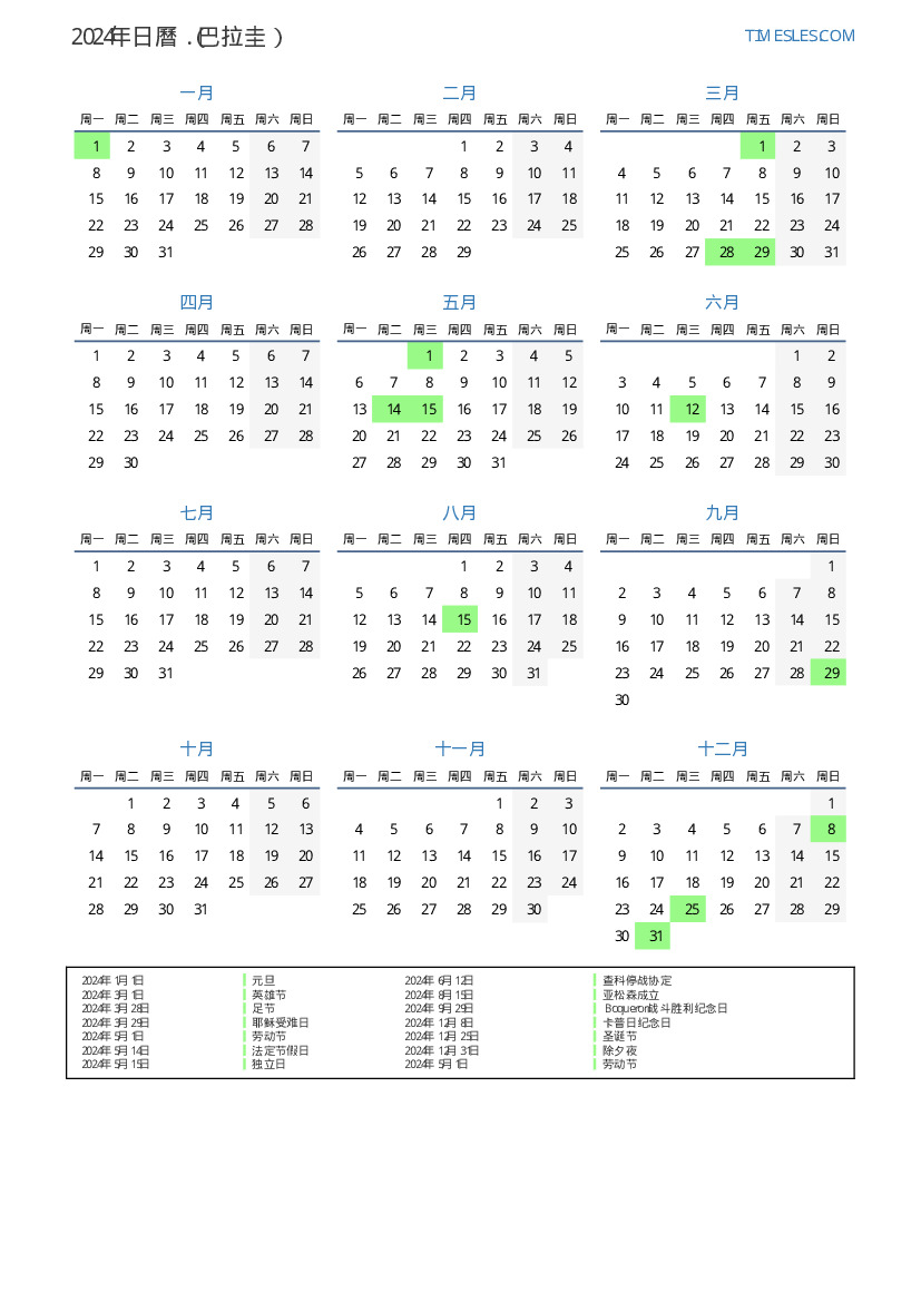 陽曆,閏年,一年366天。 在2024年,2024有21 假期和休假。 在中國東部的日曆上,2024年龍年。 一年從週一開始,到星期二結束。