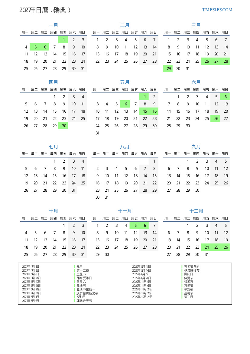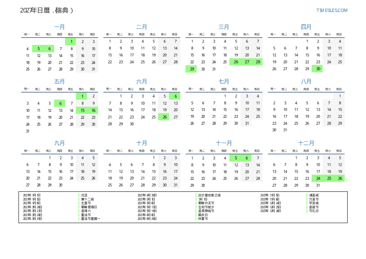 下載並打印2027年瑞典節假日和周末的PDF日曆