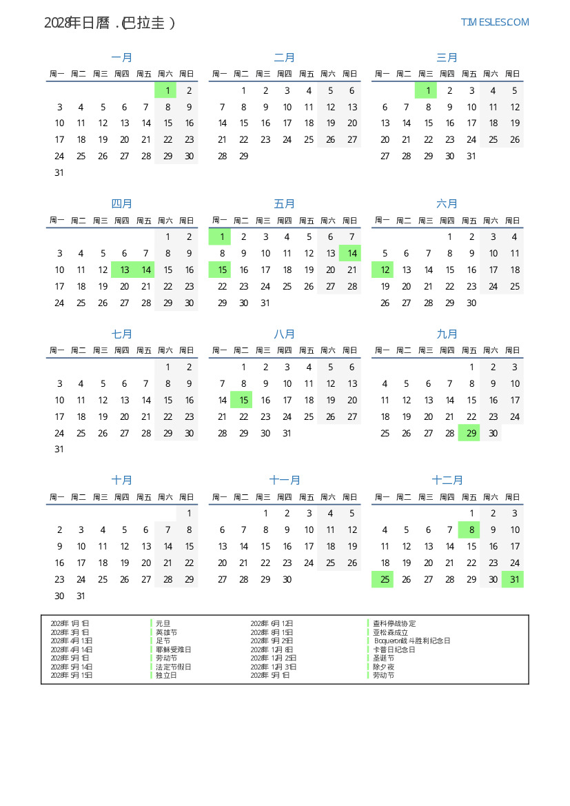 陽曆,閏年,一年366天。 在2028年,2028有21 假期和休假。 在中國東部的日曆上,2028年猴年。 一年從星期六開始,到在星期天結束。