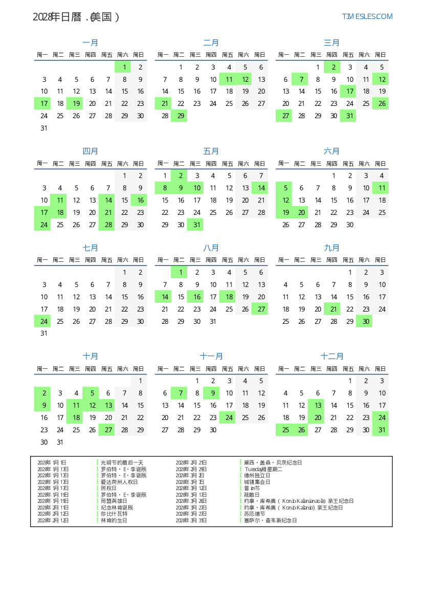 2028年4月3日 帕斯夸(Pascua)佛罗里达纪念日